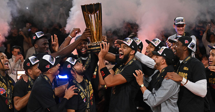 最终,尼克斯决赛以124-113击败马刺,继湖人(2023年)和雄鹿(2024年)之后,成为第三届NBA杯冠军,同时收获了一笔相当可观的奖金(人均530933美元)。