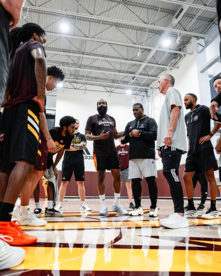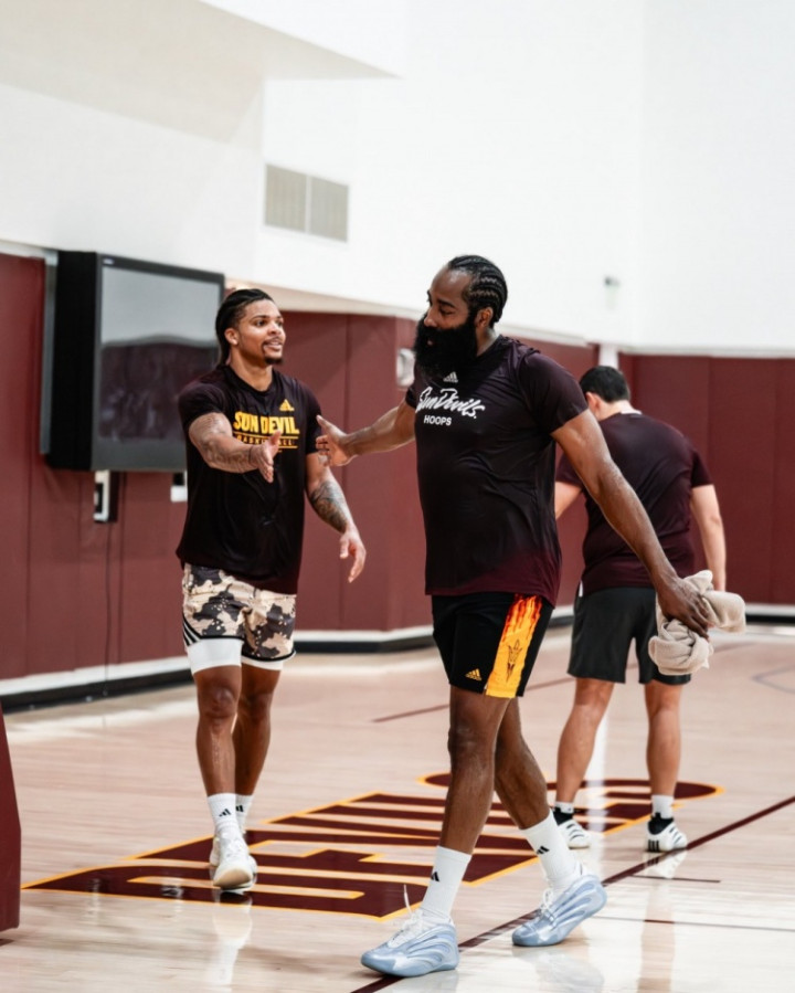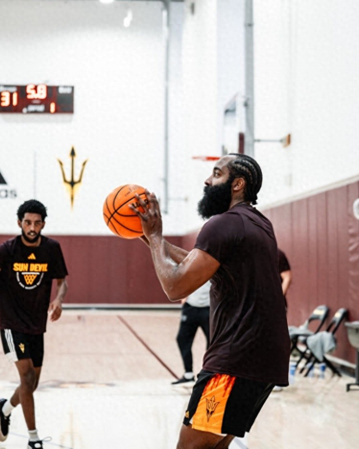 直播吧9月8日讯 亚利桑那州大男篮更新社媒,晒出了哈登回母校训练的照片。