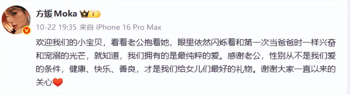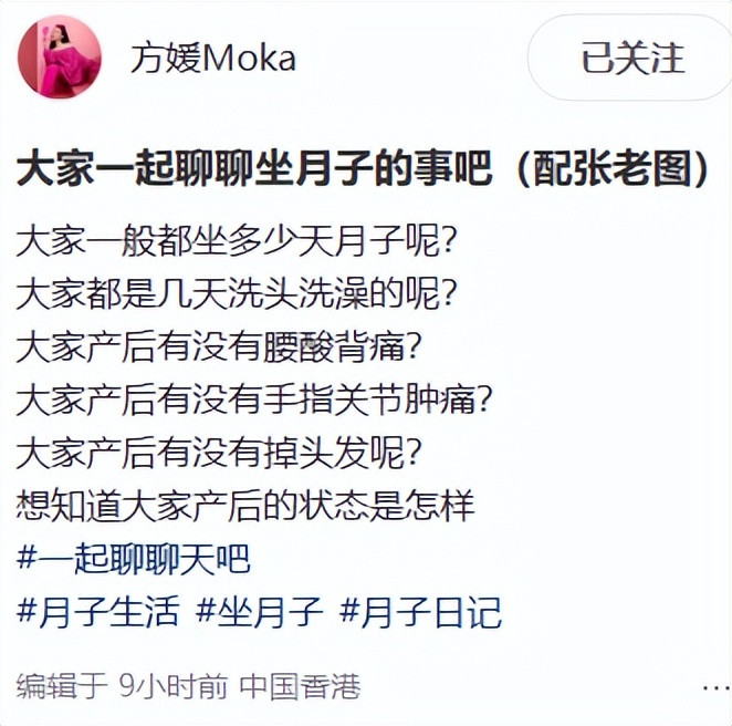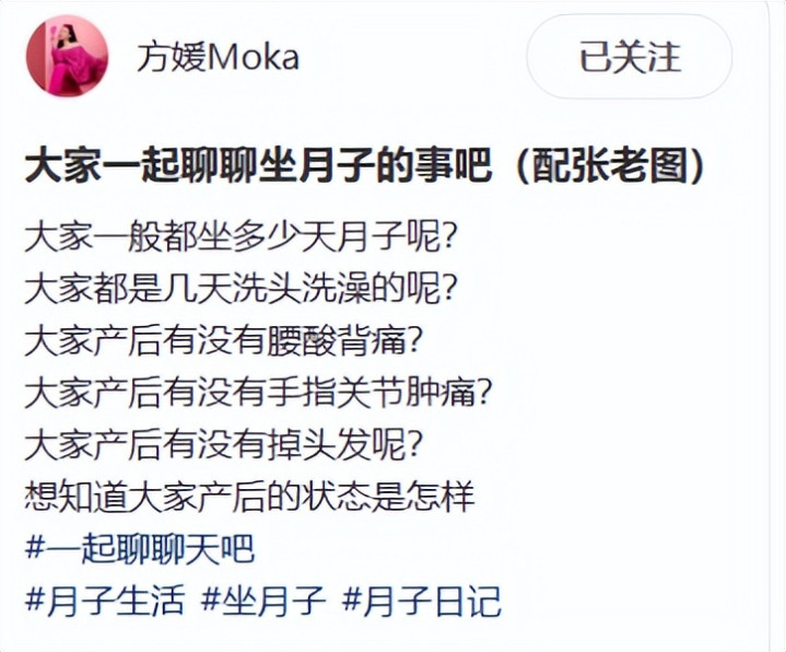 2025年11月11日上午,方媛在个人账号更新动态“大家一起聊聊坐月子的事吧”,这条看似普通的分享瞬间引爆全网!